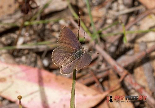 Описание: Взрослые бабочки имеют темно-коричневый окрас с фиолетовым блеском. Нижняя сторона палевого цвета с коричневыми отметинами.