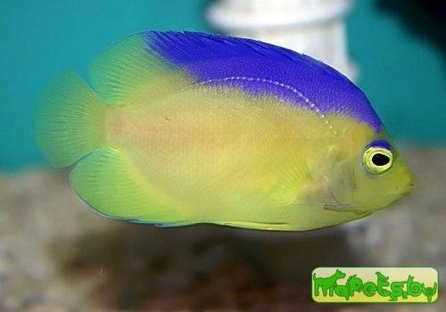 Средних размеров высокотелый центропиг с контрастной, сине-желтой окраской. Все тело и плавники светло-желтые, спина и большая часть спинного плавника тёмно-синие. Заметно синее кольцо вокруг глаза. Молодые по окраске не отличаются от взрослых. Половой диморфизм не выражен.