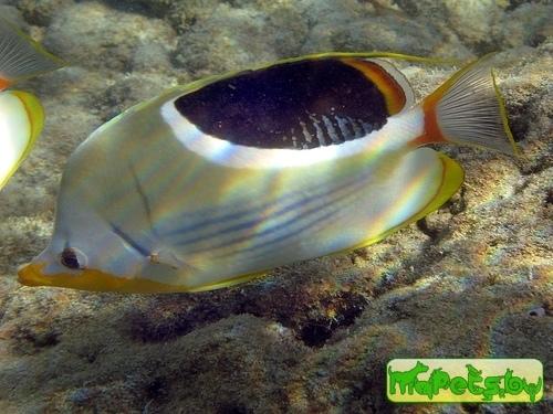 Основу рациона составляют свежие и мороженные животные корма. Можно давать нарезанное мясо мидий, креветок, кальмаров. Во время адаптации этих бабочек обычно кормят трубочником, мотылем, артемией. В качестве растительных составляющих диеты дают хлопья для растительноядных рыб, важную роль играют произрастающие в аквариуме водоросли. Кормить три раза в день.
