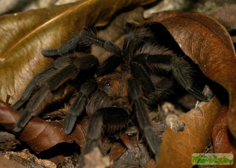 Содержание: Содержат обычно в вертикальных террариумах, паук роет норы поэтому слой субстрата должен быть 5-7 см. Температура 24-28° С, влажность 75 – 85%. Террариум оснащается поилкой. Так же стоит позаботиться об установки укрытия