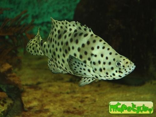 Крупный групер с высоким, уплощенным с боков туловищем, вытянутым вздернутым рылом и вогнутым в лобной области профилем. Непарные плавники высокие и обычно держатся в расправленном состоянии. Серебристо-белая окраска молодых с возрастом постепенно темнеет, становясь зеленоватой или коричневатой. На голове туловище и плавниках – округлые черные пятна. У взрослых рыб количество их увеличивается, а относительные размеры уменьшаются, так что “белая в черный горошек” окраска молоди уступает место черному крапу на более или менее светлом фоне.