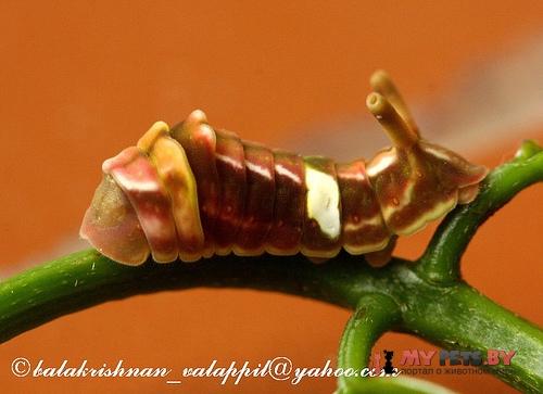 Куколка: Светло-зеленый, крыло случаях голубовато-зеленый. Существует видном форме сердца бледно охристый метку на верхней части грудной клетки, ямы на ней заполнены красноватый пигмент.