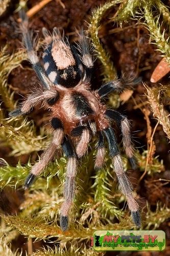 Окрас: Один из самых маленьких пауков-птицеедов, но при этом удивительно красивый и очень редкий. В России практически не встречаются.