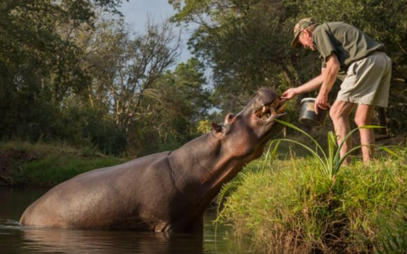 Южноафриканец Тони Жубер когда-то подобрал и выкормил новорожденного бегемотика, которому было меньше суток от роду. Прошло почти двадцать лет, детеныш вырос, окреп и стал полноценным гиппопотамом, весом более тонны.