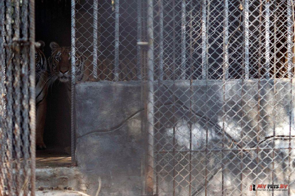 Некоторое время взрослые тигры и тигрята проводят в клетках, которые приоткрывают волонтеры.