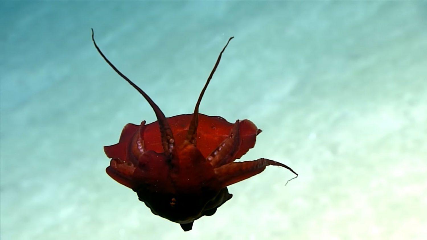 Это существо с бордово-красным телом напоминает одновременно кальмара и наутилуса. Его щупальца закручены так, что топорщатся в разные стороны. Используя подлодку с дистанционным управлением, ученые сумели заснять животное с разных ракурсов, чтобы лучше рассмотреть. Зоолог Майк Веччионе (Mike Vecchione), специализирующийся на кальмарах, поделился соображениями о находке: