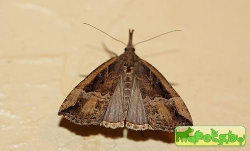 Описание: Цвет темно-бурый, с двумя светлыми поперечными линиями. На внешнем крае задних крыльев под вершиной есть выемка. Самка отличается более светлой окраской.