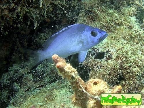 Небольшой групер с высоким, уплощенным с боков туловищем. Окраска одноцветная, голубая или синяя с ярко выраженным металлическим отливом. По краям хвостового плавника узкие черные полоски. Непарные плавники иногда с бледным желтоватым оттенком.