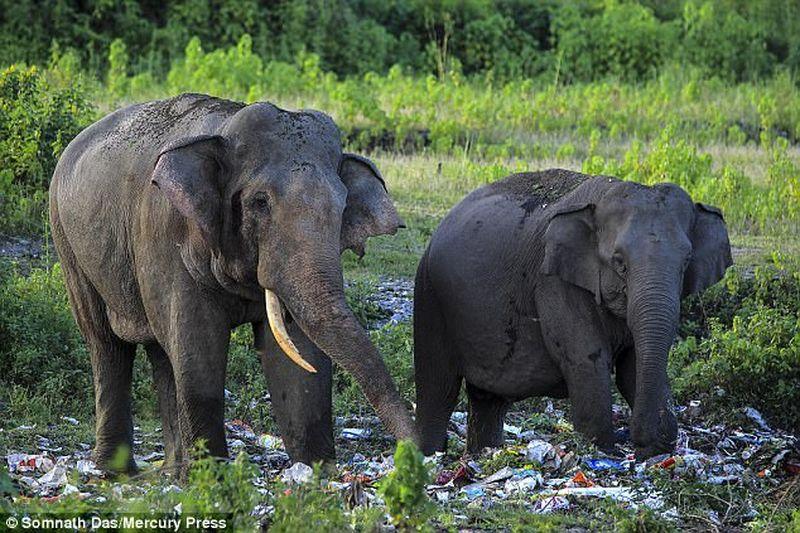 В Индии защитники животных бьют тревогу – слоны бросили питаться растениями и начали есть отходы человеческой жизнедеятельности, несмотря на обилие сочной зеленой травы вокруг. Одно из животных за разграблением свалки бытового мусора случайно снял местный фотограф.