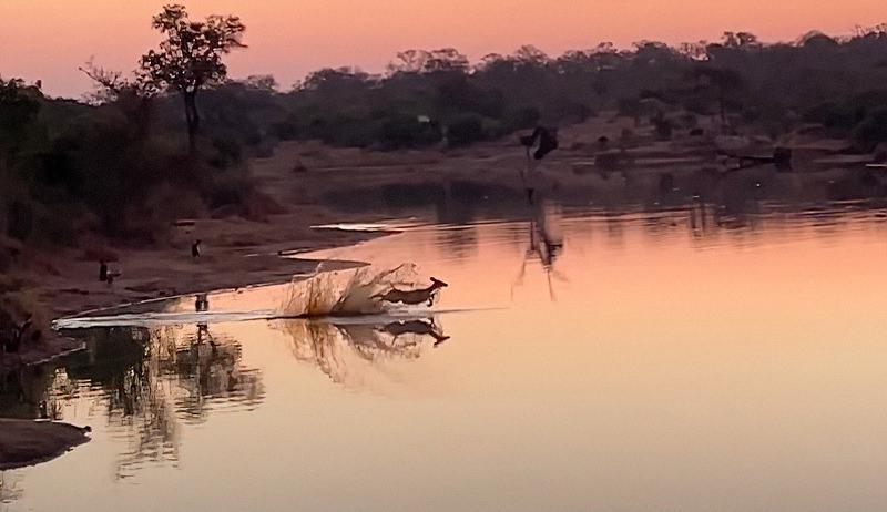 Но иногда бывают и исключения. Свидетельством счастливого спасения импалы поделился 24-летний рейнджер Дэниел Хитчингс, сопровождавший туристов в Национальном парке Крюгера. Сначала люди наблюдали, как гиеновидные собаки заканчивают свою трапезу, но тут на водопой неосмотрительно забрела импала, и внимание хищников переключилось на нее.