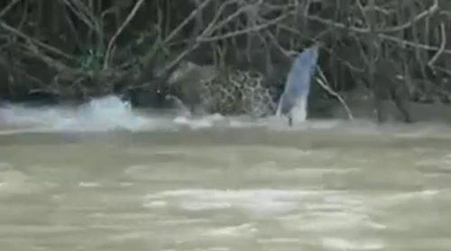 Кайман напал на ягуара и утащил его под воду. Животные на мгновение скрылись из вида, но затем снова показались на поверхности реки. На этот раз рептилия оказалась в челюстях ягуара. Зверь выбрался на берег и следующие 20 минут тащил каймана в заросли.