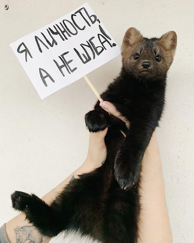 Девушка выкупила животное на ферме, поставляющей сырье для меховой промышленности. Однажды москвичка Женя увидела фотографии соболей (Martes zibellina), живущих на фермах. В России насчитывается не менее 70 таких предприятий, и спрос на соболиные шкуры не уменьшается. Для повышения качества меха зверям создают сравнительно неплохие условия и кормят дорогими кормами, однако в возрасте 9-12 месяцев их жизнь заканчивается.