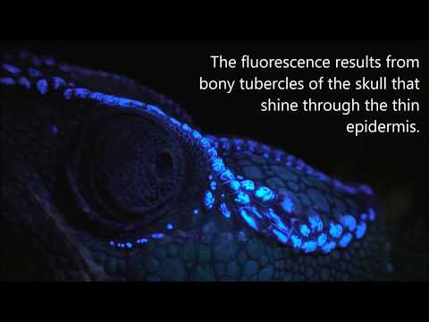 Однако никто даже и не подозревал, что многие виды хамелеонов имеют ещё одну способность: они флуоресцируют под ультрафиолетовым светом, и при этом образуются не менее впечатляющие узоры. Такое открытие сделали исследователи из Мюнхенского университета имени Людвига и Максимилиана.