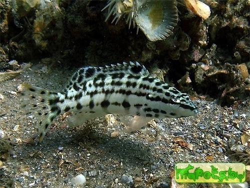 Мелкий груперы с прогонистым телом и вытянутым рылом. Основной тон тела желтоватый или белый с желтым оттенком на брюхе и боках. Рисунок состоит из широких темно-коричневых вертикальных полос и продольных рядов небольших округлых пятен. От глаза к кончику морды тянется темная полоска. Непарные плавники покрыты узором из глазчатых пятен. На краю спинного плавника у взрослых особей заметна желтая оторочка.