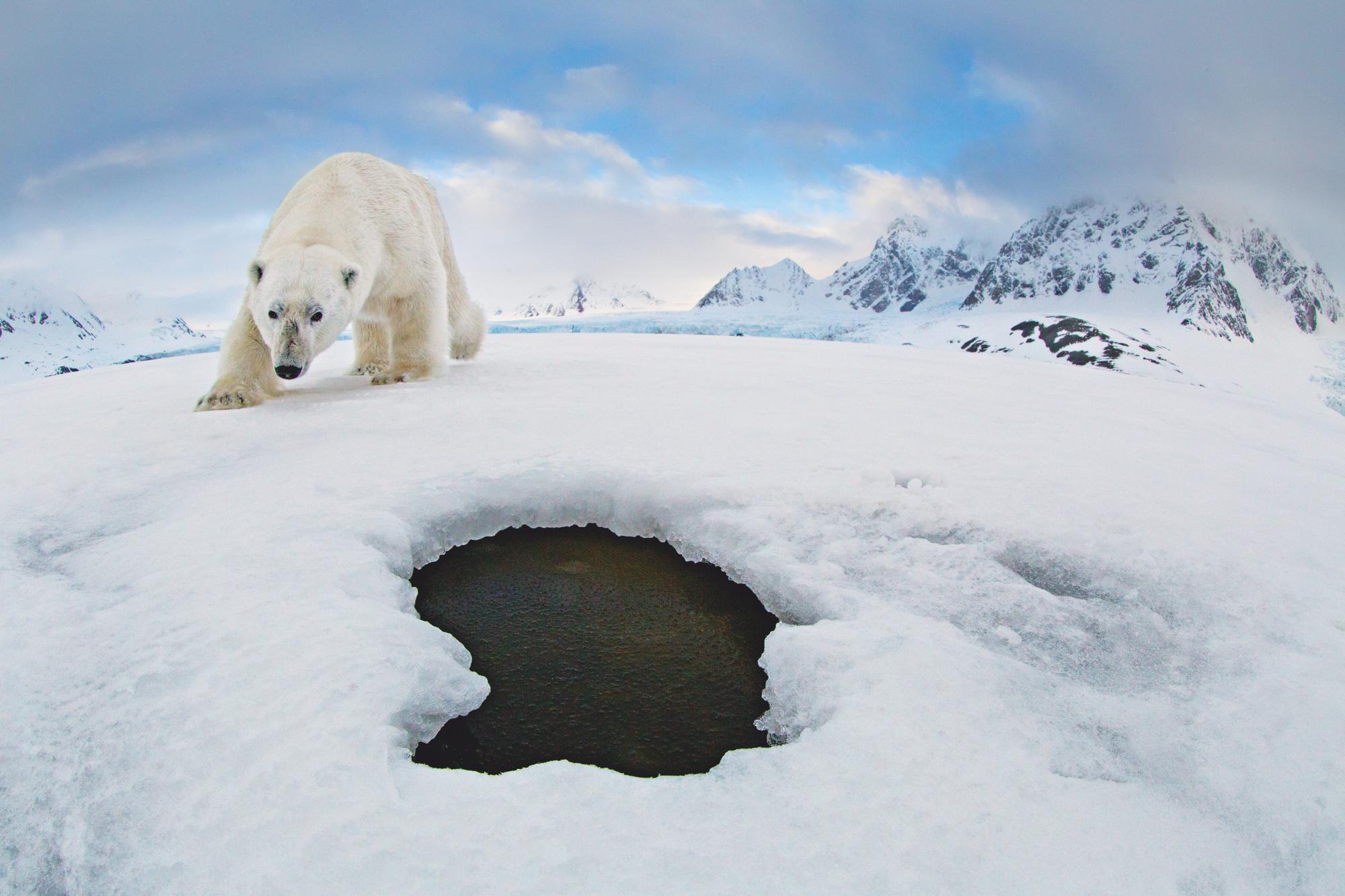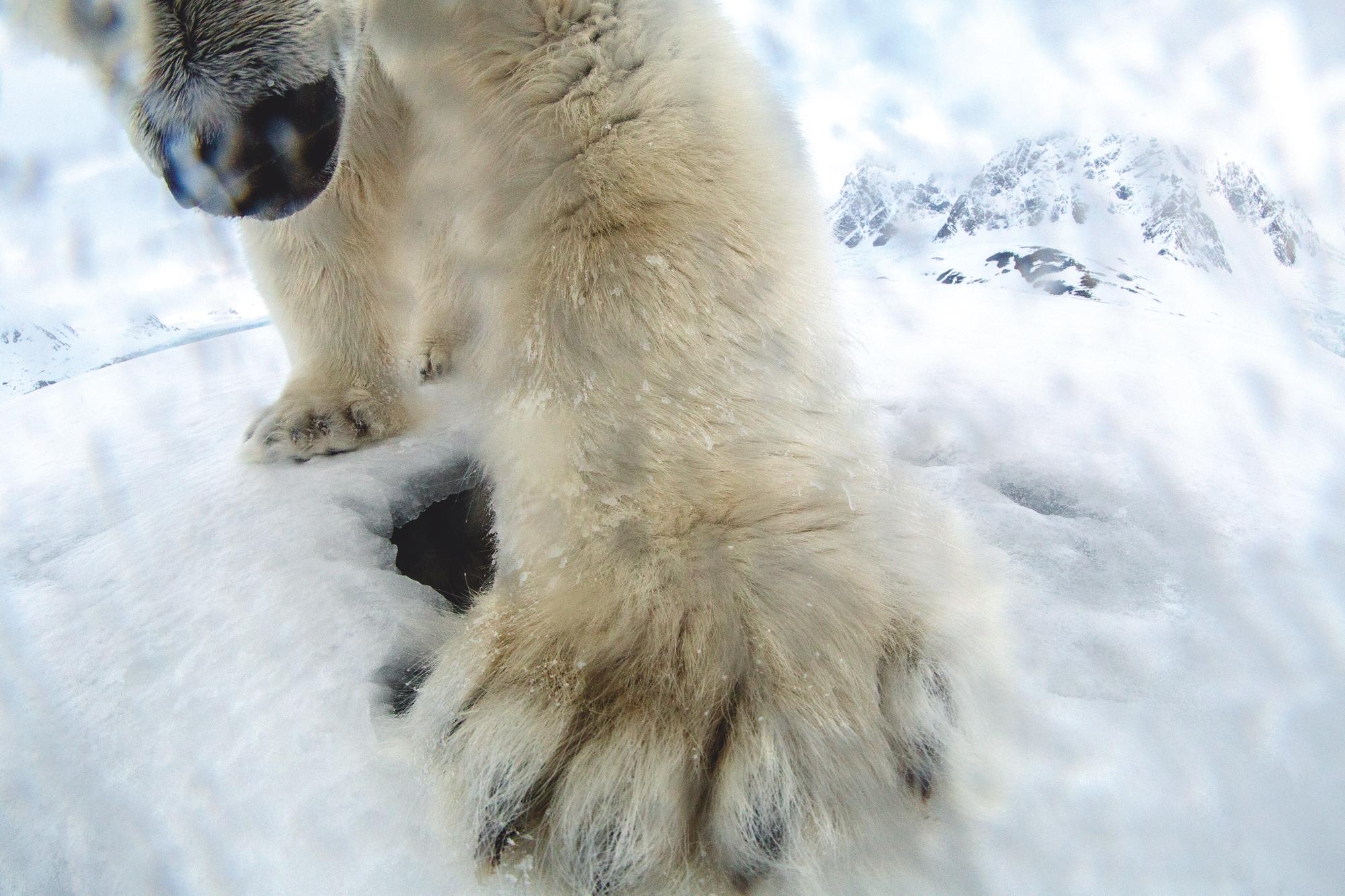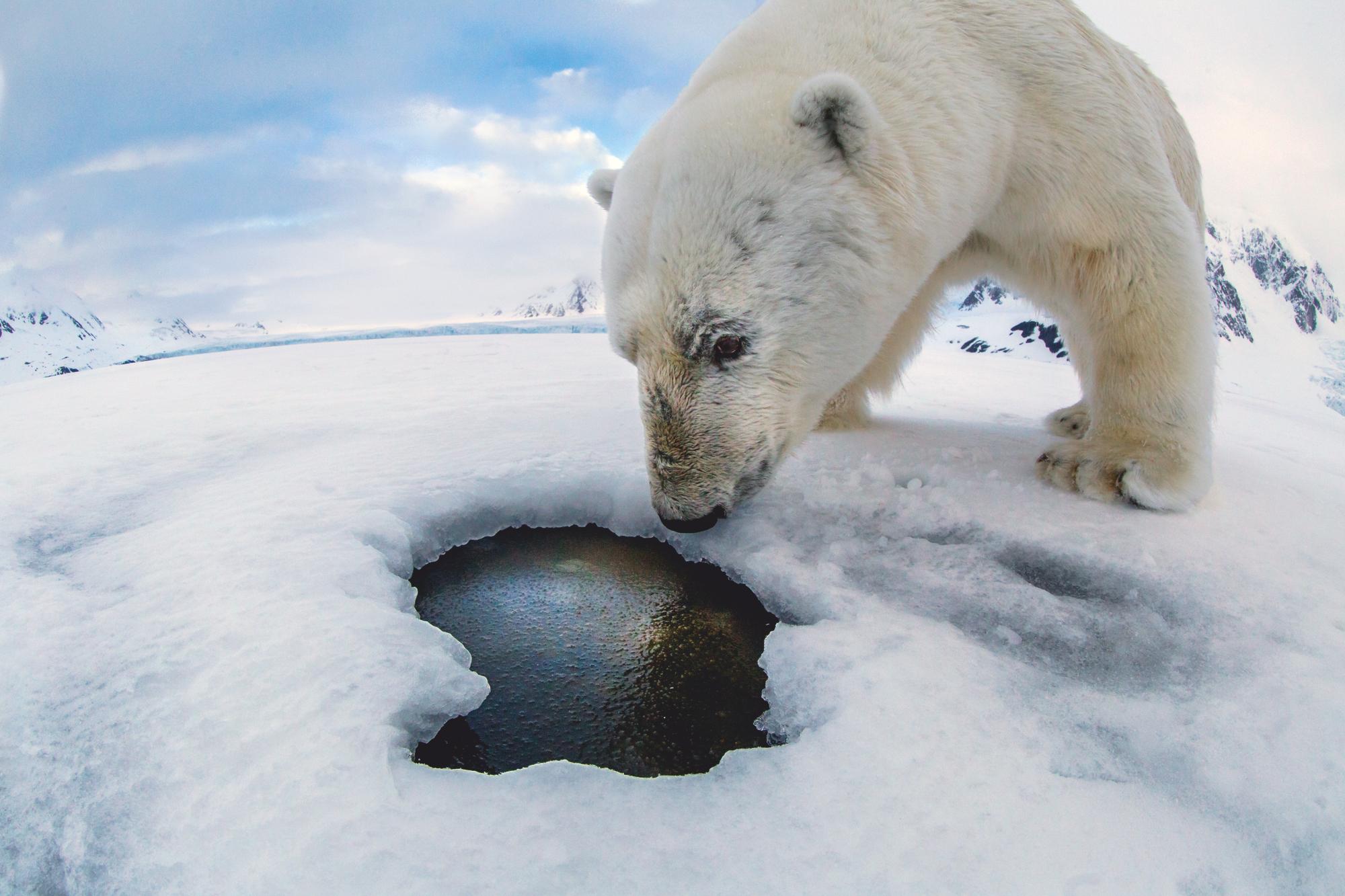Фотограф Аудун Рикардсен разместил фотоловушку рядом с полыньей во льду, надеясь получить идеальный снимок тюленя. К ловушке пришел чрезвычайно любопытный белый медведь.