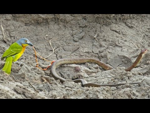Специалисты заметили ядовитую змею вида Rhamphiophus oxyrhynchus, лежащую в яме, и уже это удивило их: в ЮАР сейчас зима, и змеи не проводят время на открытых участках. Затем к рептилии подлетел обитатель саванны, сероголовый кустарниковый сорокопут (лат. Malaconotus blanchoti). Но не успели туристы порадоваться встрече с яркой птичкой, как та начала бесстрашно вытаскивать из змеи внутренности, подлетая к ней сзади. Глаза рептилии уже были выклеваны, но при этом она была еще живой и беспомощно открывала свою пасть, пытаясь выглядеть угрожающе.