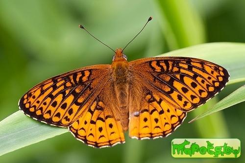 Описание: Это оранжевая рябчик имеет рядами темных точек или шевроны на кромках крыльев и черные или коричневые линии проксимальнее. Вентральной стороне крыльев также оранжевый с несколькими рядами белых точек.