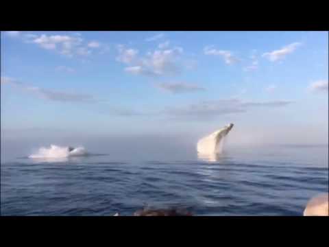 Спустя годы практика распространилась по всему миру: в акваториях, куда регулярно приплывают киты, организованы водные экскурсии. Одно из таких мест – канадская провинция Новая Шотландия. Здесь китом можно встретить летом, а на зимовку они мигрируют в более тёплые воды. В августе группе особенно повезло: киты не просто проплыли рядом, а совершили синхронный прыжок. Такое трудно себе представить, но турист по имени Эдуард Жиру успел снять животных на видео. На запись попали и реплики гида Ocean Explorations Zodiac Whale Cruises: «Внимание, сейчас будет тройной прыжок!».