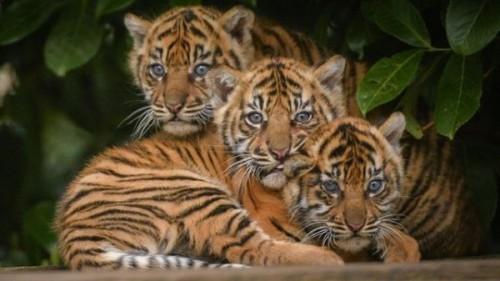 Тройня суматранских тигрят чувсвтует себя прекрасно
