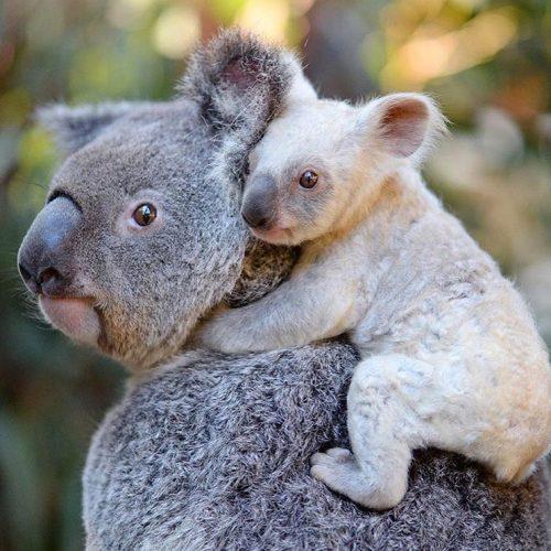 Самка, родившаяся у коал по кличке Тиа (Tia) и Слейтер (Slater), отличается очень светлым мехом. Специалисты подчеркивают, что об альбинизме речи не идет: тогда у нее были бы розовые глаза и нос. В данном случае коала унаследовала рецессивный «серебряный» ген от своей матери, но по мере взросления шкурка малышки должна начать темнеть.