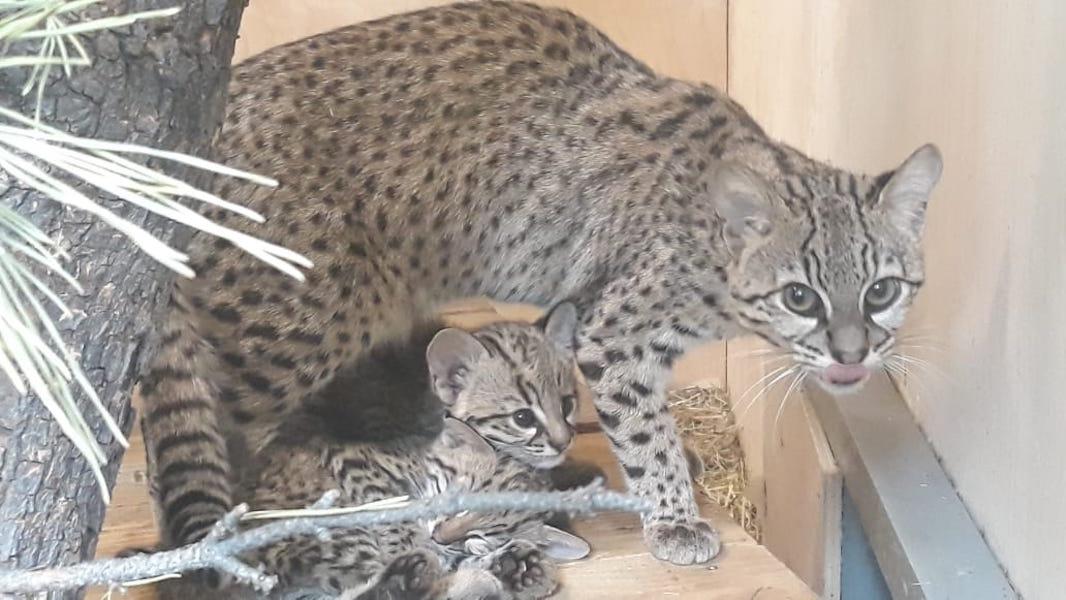 Кроме кошек Жоффруа заботами о потомстве сейчас заняты и другие представители семейства кошачьих. Малыши родились в семьях сервалов, каракалов и виверровых кошек. Пока у посетителей нет возможности увидеть всех этих котят. Но уже совсем скоро, как только установится теплая погода, кошек с котятами переведут в уличные вольеры.