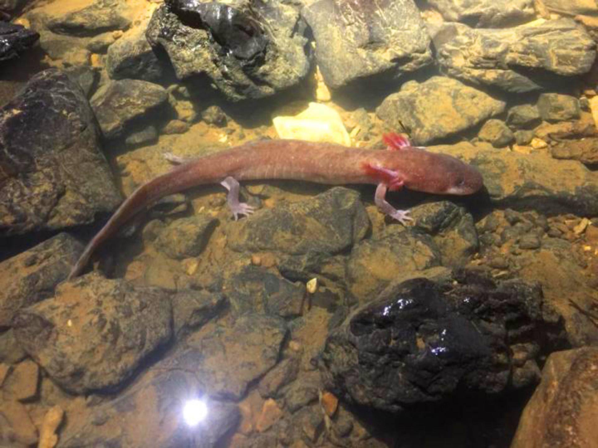 Команда ученых обнаружила самого крупного представителя пещерных саламандр в Северной Америке — особь вида Gyrinophilus gulolineatus длиною 23,8 сантиметра.