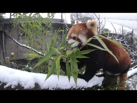 Снег также доставил удовольствие малым пандам: трехлетней Мей Мей (Mei Mei) и 7-летнему Мошу (Moshu). В дикой природе эти звери живут при температуре +10…+25 °C, но их шкура приспособлена к тому, чтобы выдерживать непродолжительные заморозки, и дополнительное тепло дает пушистый хвост, в который они могут «закутаться».