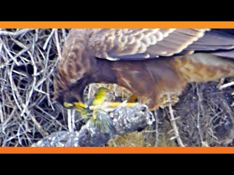 Недавно туристы смогли снять крупным планом африканского луневого ястреба (Polyboroides typus), который разорял гнездо ткачиков. Сначала хищник методично вытаскивает из стенки гнезда веточки, а затем достает из него птенца. После этого он выщипывает у тушки лишние перья — и лишь затем приступает к трапезе.